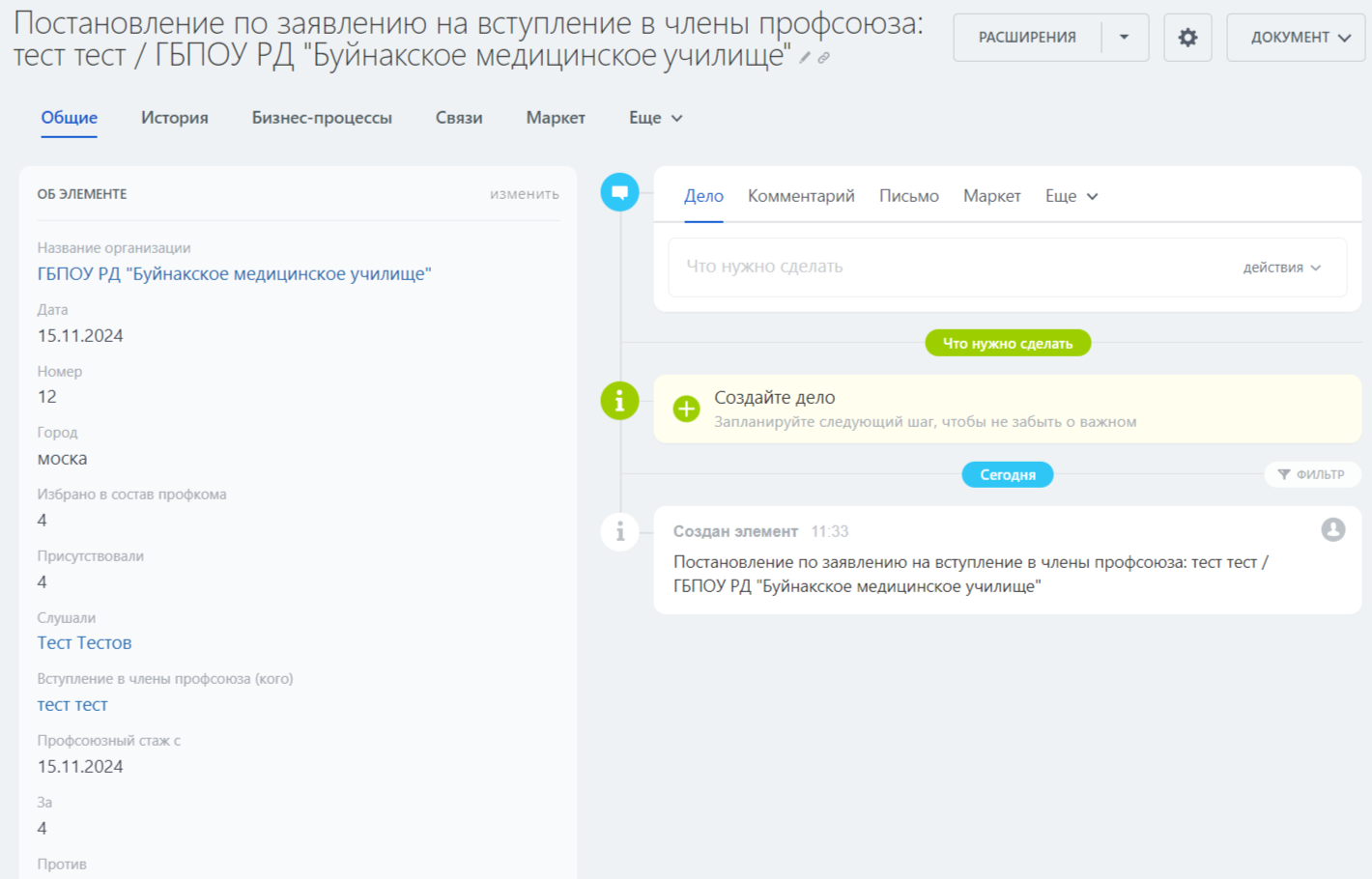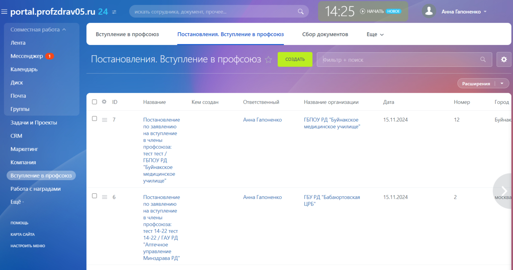 Разрабатываемая система позволяет перенести базы данных членов профсоюза и членских организаций, а также настроить карточки учета и формат отображения необходимой информации. Благодаря этому сотрудники аппарата или представители ППО могут мгновенно находить нужные карточки членов профсоюза или организаций, просматривать данные и начинать работу с ними.